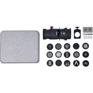 Featuring a universal Bowens accessory mount, the Spotlight SE is compatible with the brand’s 150c and 300c full-color LED monolights. Your fixture can be easily magnified, bringing a new level of flexibility and enhanced output from it. This modifier also works with other Bowens mount point-source lights with up to 300W of power output, ranging from the amaran COB 60d S to the Aputure LS 300x. The Spotlight SE has a durable all-metal housing and this kit is packed in a case to storage and protect the housing, lens, and included accessories.