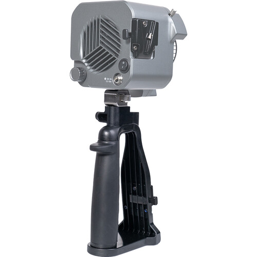 The Amaran COB 60 Series LED Monolight Handheld Bracket from Aputure has style and an ergonomic design. It is a convenient and comfortable way to handhold your COB 60-Series LED during long shoots. This portable and stable grip is made from high-strength ABS material and metal. It features a 1/4″-20 threaded tip, an umbrella shaft receiver with locking screw, and a V-mount plate for attaching a battery pack.