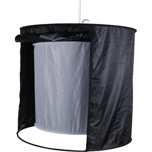The Aputure Space Light Diffuser is designed for the Nova P600c and P300c LED Panels and features a cylindrical design, which is achieved by mounting the light into a suspended circular-shaped frame. This allows the panel to spread light 360° over a wider area, reducing edge shadows, and making it suitable for soft light environments. Offering 360° illumination with an adjustable light control skirt, the inner layer of the light control skirt is slightly reflective, and in combination with the black outer layer, it completely eliminates spill light. A versatile modifier with multiple creative applications, when only one side of the skirt is rolled down, the soft light is given direction. Meanwhile, when the skirt has been completely closed, the resulting light is projected downwards through a circular aperture for dramatic effect.