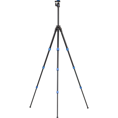 This TSL08AN00 Slim Aluminum-Alloy Tripod from Benro supports up to 8.8 lb and includes an Arca-type ball head with quick release plate. Designed to conserve space during storage and transport, the tripod measures 20.1″ long and 3.2″ wide when folded. Its 4-section legs each feature an independent spread, a 3-position angle lock, half-turn twist locks for rapid deployment, and a rubber foot to enhance stability on a wide variety of surfaces. Together, the three legs can be extended and spread to raise the tripod from a minimum height of 15.7″ to a maximum height of 48.4″ or 57.6″ with its push-and-pull, rapid center column fully raised.