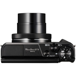 Blending notable imaging qualities with refined handling, the PowerShot G7 X Mark II Digital Camera from Canon is a compact point-and-shoot characterized by its large feature-set. Utilizing a 20.1MP 1″ CMOS sensor and DIGIC 7 image processor, this camera offers a maximum ISO 12800 in Program mode, and achieves smooth image quality with reduced noise when working in low-light conditions. Additionally, it is also capable of recording stills at up to 8 fps as well as Full HD 1080p60 video. Complementing the sensor and processor combination is a versatile 4.2x zoom lens, which provides a 24-100mm equivalent focal length range, covering wide-angle to short-telephoto perspectives. A fast f/1.8-f/2.8 maximum aperture maintains consistent performance throughout the zoom range and also benefits working in difficult lighting conditions. The lens design is surrounded by a familiar control ring that offers intuitive control over settings, and a large 3.0″ 1.04m-dot tilting touchscreen LCD provides a natural means for composing imagery from a variety of shooting angles. Additionally, the G7 X Mark II also features built-in Wi-Fi with NFC for wireless sharing of imagery to smartphones or tablets, as well as remote camera control from linked mobile devices.