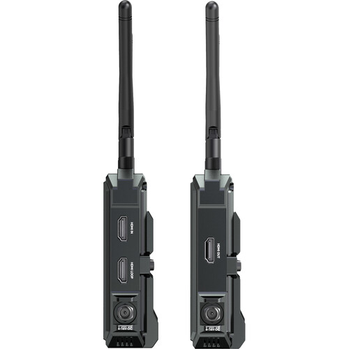 Add 4K30 wireless video transmission to your production using the versatile Pyro H 4K HDMI Wireless Video Transmission System from Hollyland. The system includes a wireless transmitter, a wireless receiver, five antennas, a USB-A to USB-C adapter, and an adjustable shoe adapter mount. The transmitter provides HDMI input and features extremely low 60 ms latency that accepts line-of-sight transmission from up to 1300′ away to the included receiver. When using broadcast mode using up to four receivers and two mobile devices, the system supports up to 650′ away. The receiver outputs to HDMI, and the transmitter also features an HDMI loop output for displaying your local feed on a monitor.