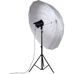 Thanks to its 65″ diameter, the Translucent Deep Umbrella 165 creates light with a wrap-around quality and a broad beam angle that’s ideal for wide coverage of groups, large spaces, etc.