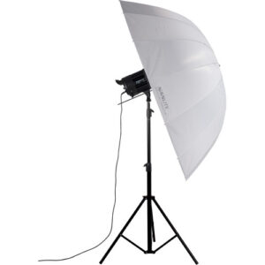 Thanks to its 65″ diameter, the Translucent Deep Umbrella 165 creates light with a wrap-around quality and a broad beam angle that’s ideal for wide coverage of groups, large spaces, etc.