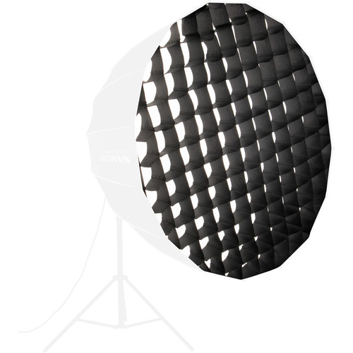 The Fabric Grid for Para 150 Softbox from NanLite mounts to the front of the softbox to minimize light spill and add directionality by tightening the beam angle. Grids are great for selectively lighting subjects without losing the soft quality of light produced by the softbox. This fabric grid swiftly and easily attaches to the softbox via touch fasteners