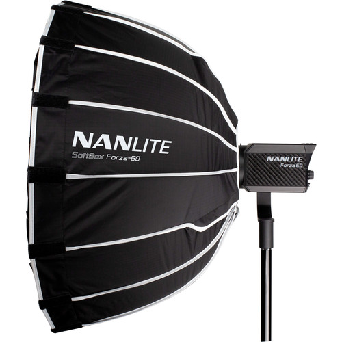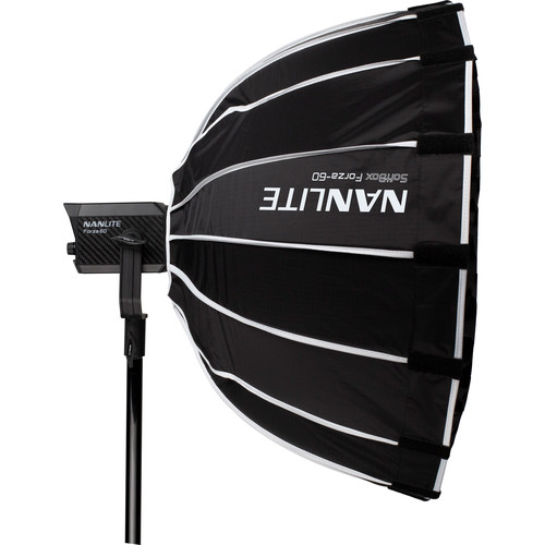 Ideal for portraits and interviews, the 23.6″ Forza 60 Softbox from Nanlite is a 16-sided light-modifier creating focused and soft light with punchy and crisp edges. This unique shape lends dimension and detail to your subject as well as natural-looking catchlights in their eyes, while the parabolic design of the modifier renders significant falloff at the