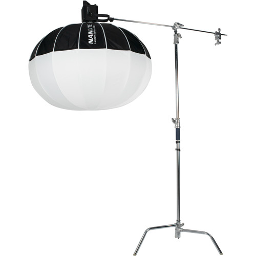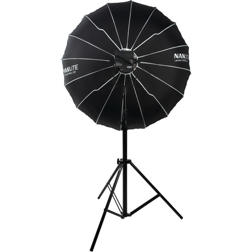 Ideal for hanging overhead on a boom, the 47″ Lantern Softbox from NanLite is a near omni-directional light source that spreads light over a 270° area to increase ambient light or to provide the type of overhead lighting you’d see at a table in a restaurant or club. The Lantern comes with a Bowens speed ring that besides NanLite,